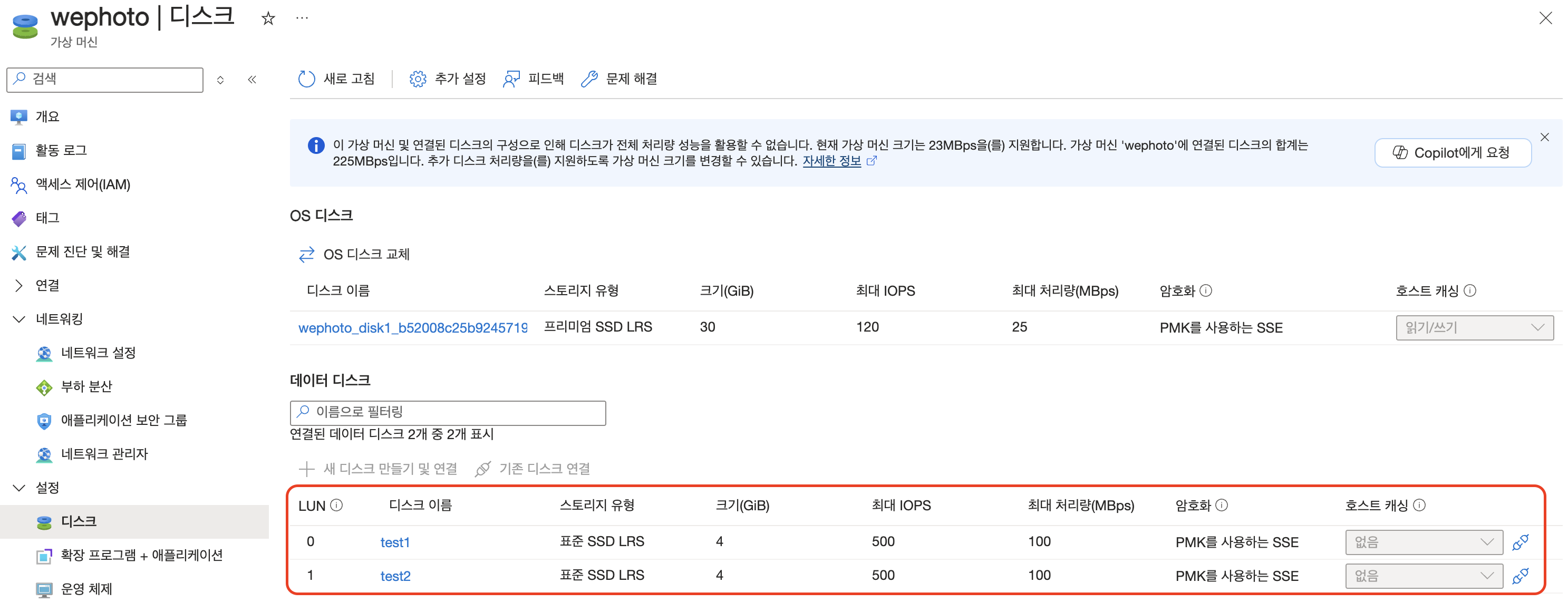 VM을 선택하고 설정에서 디스크를 선택합니다.