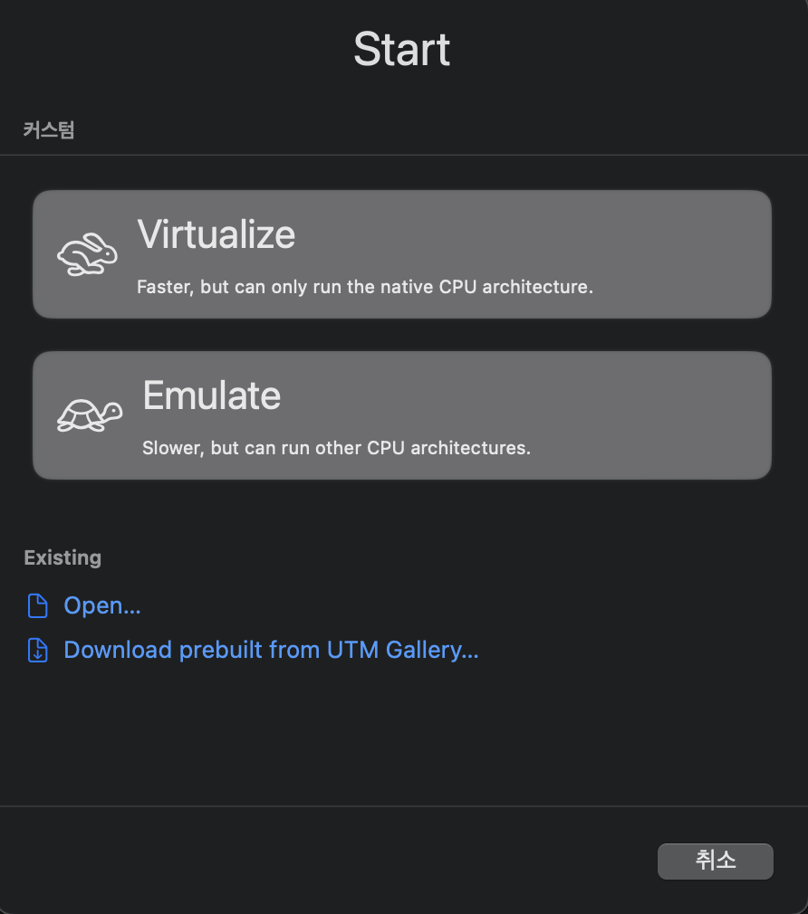 맥북에서 무료로 사용할 수 있는 UTM에서 가상 머신을 생성하였습니다.